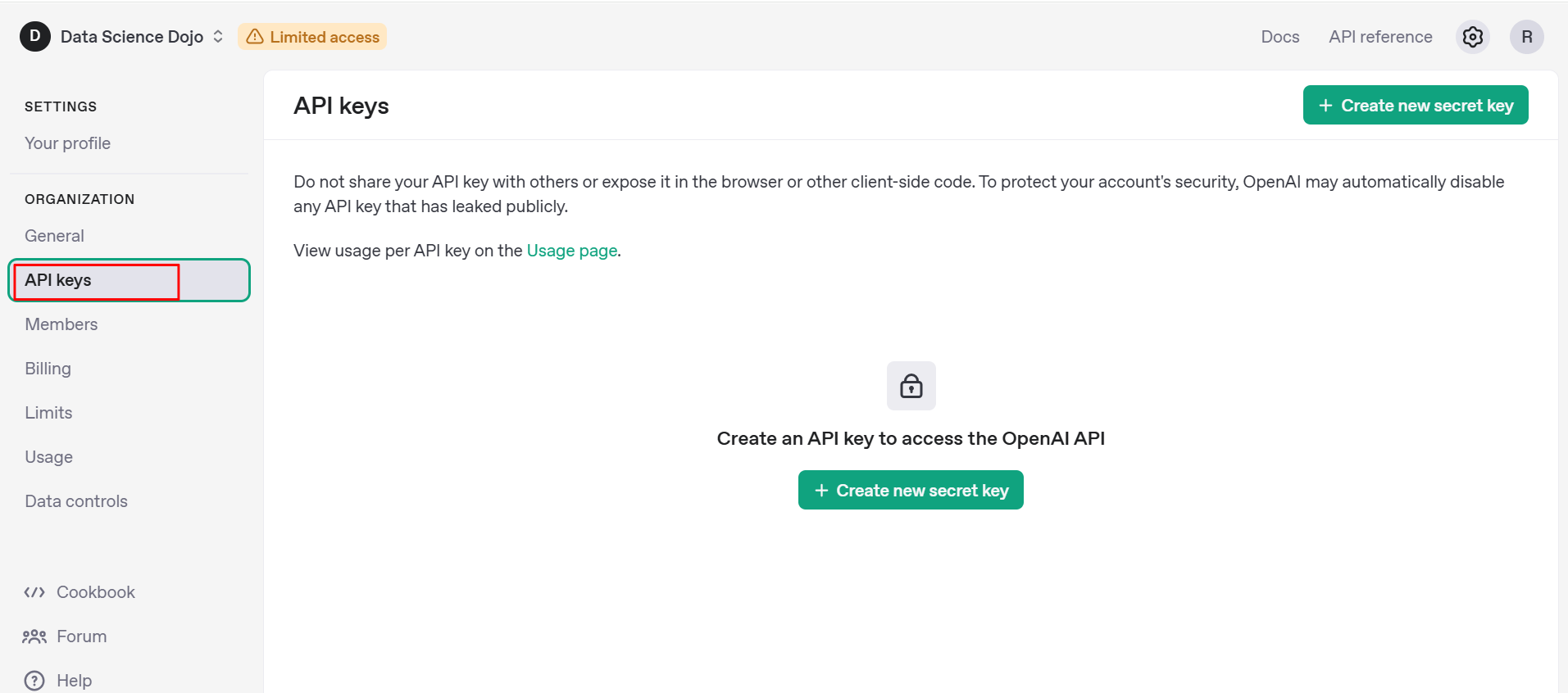 Step 3: Navigate to the API keys section